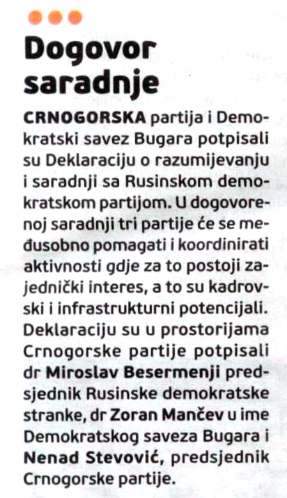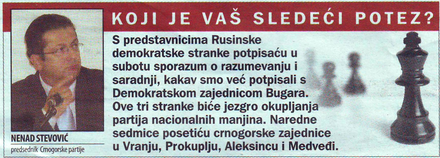Kada se završi ova svojevrsna komedija koja je nanijela ogromnu štetu našoj zajednici u Srbiji, Crnogorska partija i „Krstaš“ će se uključiti i pokušati da riješe ovaj problem u interesu 69.000 državljana Srbije koji su se 2002 godine izjasnili da pripadaju crnogorskoj naciji.