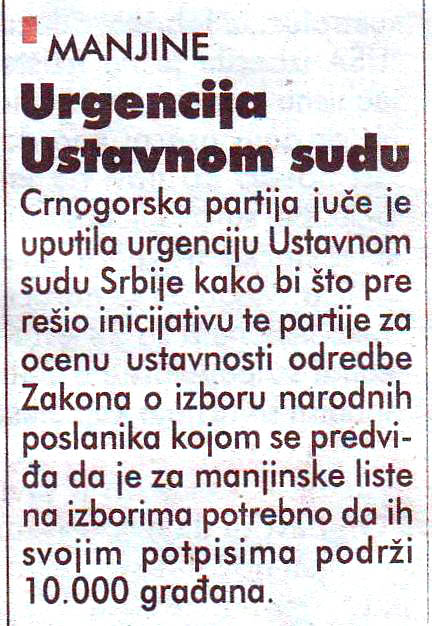 Zatražili su mišljenje od Nacionalnog savjeta, koji u potpunosti kontrolišu SNS i SPS, o tome “da li Izborna lista Crnogorske partije može imati položaj izborne liste nacionalne manjine”. Cilj je jasan, želi se po svaku cijenu spriječiti izlazak Crnogorske partije na lokane izbore u opštini Mali Iđoš u kojoj su predate samo dvije izborne liste, i to koalicije SNS i SPS i lista Saveza vojvođanskih Mađara (SVM).